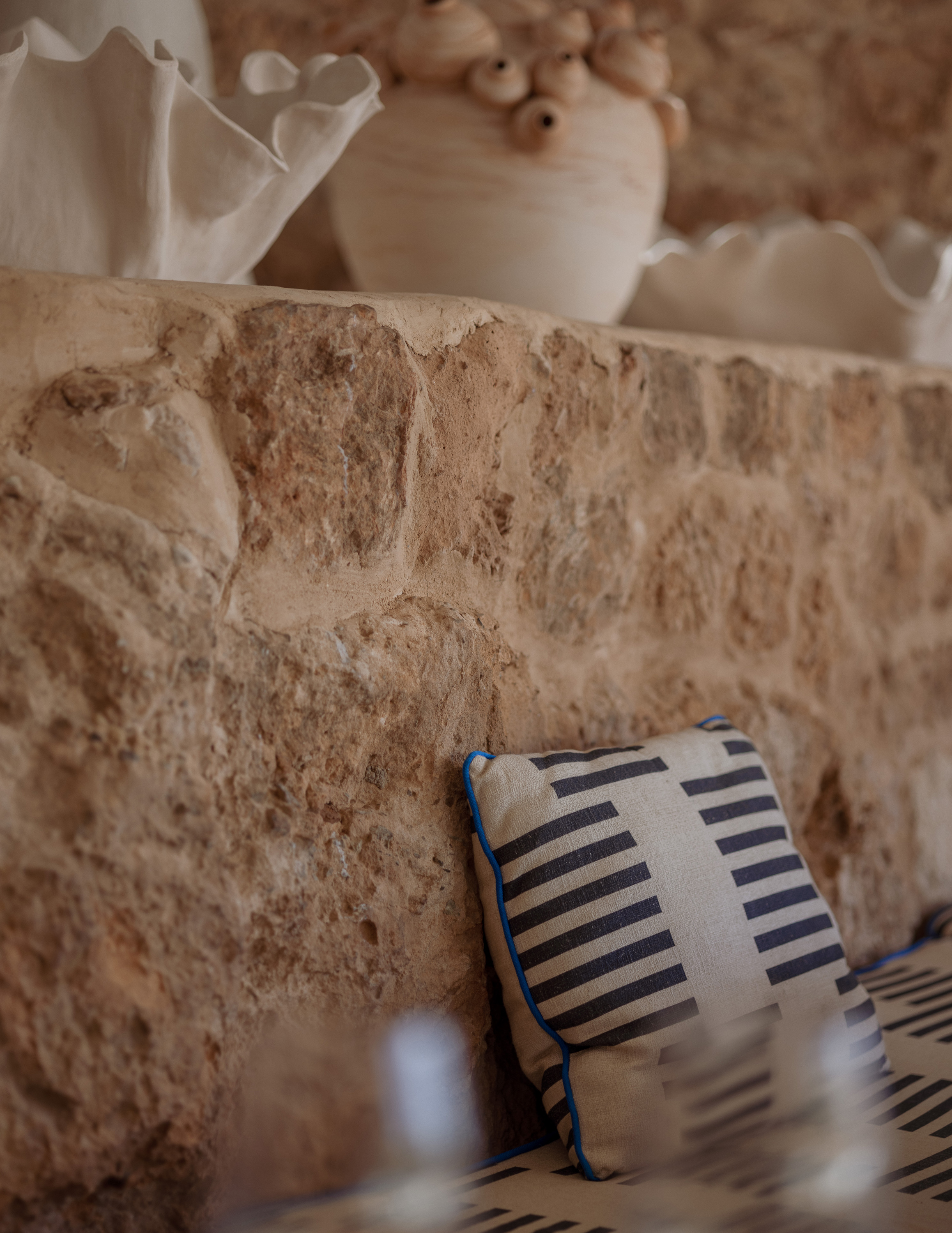The beach club and restaurant Cala Bonita, stands as one of Ibiza’s iconic beach chiringuitos. The project called for a sensitive reimagining to revive the space while preserving its essence. Our goal was to highlight its inherent charm through a subtle intervention, ensuring it felt as though it had always belonged. We used natural materials, and colour tones to blend into the landscape, creating custonised funriture pieces and objects accordingly.